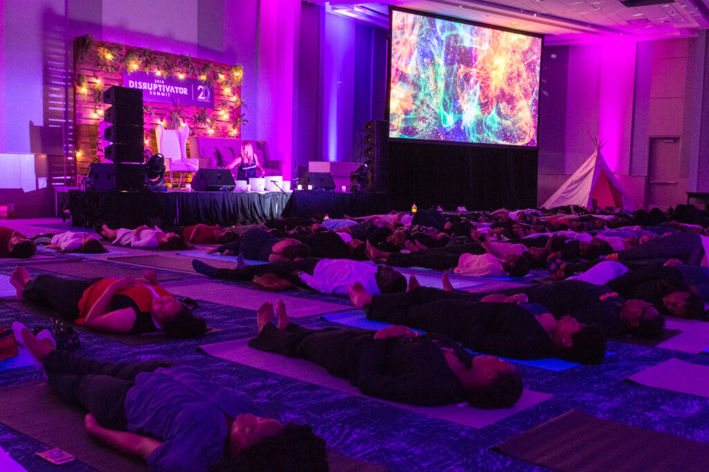 In 2019, our Disruptivator Summit included diverse mental health specialists to share insights on coping with mental health stressors. With partnerships such as Silence the Shame and SND Bath, students learned skills on early recognition of mental health issues, understood the importance of erasing the stigma of mental wellness and experienced anxiety-reducing sound baths and breathing exercises from SND Bath report.